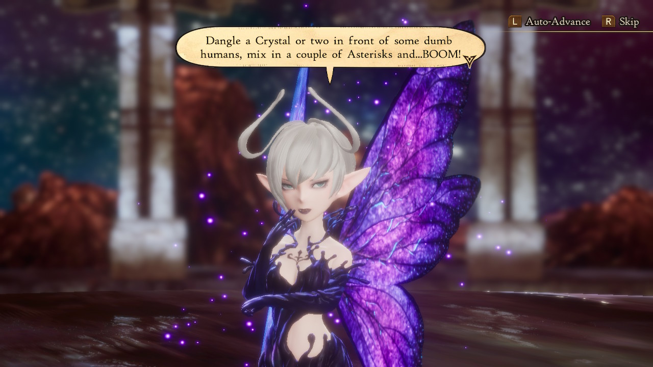 前に記事書いたときに終わってるといったエンディングまでのSS振り返りを。 と言っても今この記事書いてる時点で2個目のエンディングも見てるしなんならクリアには至ってないから3回目もあるのが確定してるんだけど。 ちなみに1回目のやつは夢落ち、2回目のやつはパラレルワールドの記録、別の世界線、起こりえた現実ではない事象、そのあたりのこと、ということにされてこうならないようにしましょうねっていうストーリーの持って行き方。 Earth Crystal Water Crystal Wind Crystal Fire Crystal 15年前の光の英雄達。 妖精さん。例の頻出表現が。 妖精さんって羽はだいたいみんな一緒で色違いくらいだけど、耳のとがり方にだいぶ差があるんよね。花から生まれてくるって話だしベースになってる花によって違うのかな。 大魔法峠だよ妖精さん。別に大魔法峠要素はないんだけど、ただkill them allで思い出しただけ。 このボスには一回全滅させられた。JPため中のなめくさった構成だったってのもあるけど、状態異常とかの初見殺しがあると結構崩されがち。特に耐性あんまつけずに火力出すキャラ1体で雑魚は何とかしてるからボス戦で倒しきる前になんかされると弱い。一回見たうえでリトライすれば何とかなるくらいのちょうどいい難易度だとは思う。 全滅させられた時のコンボ中の様子(フルブレイブ→耐性落とし(今ここ)→単体攻撃でSethダウン→全体攻撃でGloriaダウン→同じくElvis&Adelleダウン)だった。出てる数字的には1000~1500くらいだから頑張れば耐えられそうな範囲ではある。 この妖精さんを倒したら一応一回目のエンディング。 エンディング中、歌は日本語で歌われるけど、スタッフロールの画面の下に歌詞の英語訳が表示されてる。 このゲームオートセーブが結構優秀で、クリア後のセーブデータもしっかりオートセーブしてくれる。 そのほかは画面変わったときだけオートセーブだから、長いダンジョン歩き回ってそのままボス戦とかやって全滅するとオートセーブされてないからあぶないけど、ちゃんとセーブポイント見たら手動セーブってしてれば、オートセーブを補助的に使えて困ることはないと思う。 2021.03.30 Tue 03:30:00