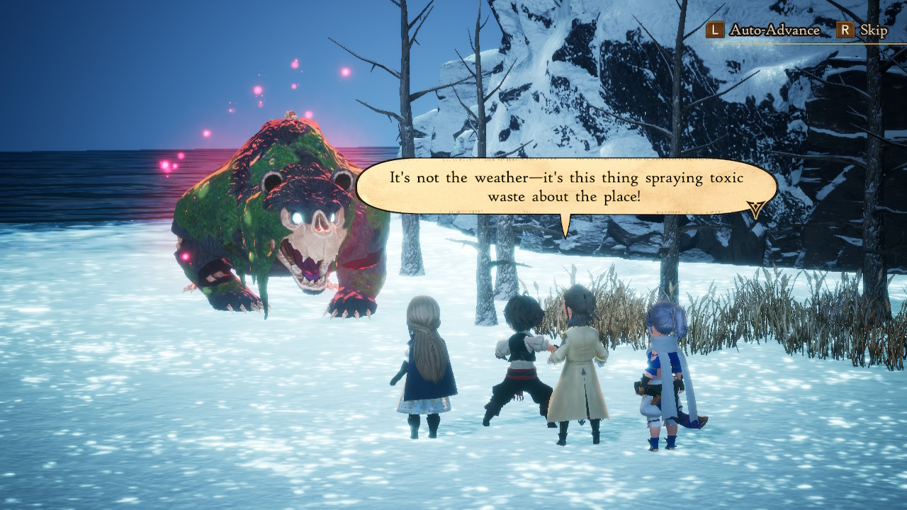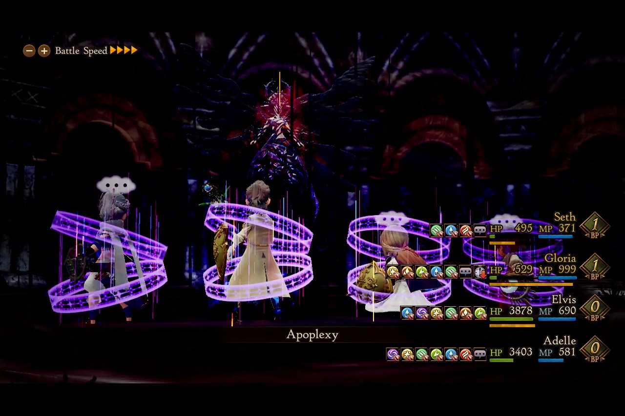 BDIIもだいぶ進んだかなぁ。あとどのくらいストーリーあるかわからんけど。 今回SSの振り返りするのは第4章。裏では一回エンディング流れたところまではいってる。 第4章の敵陣営。一番左の人だけ4章では戦わないんだったかな。 この先のストーリーも把握してると全キャラ主人公陣営と因縁ごりごりのメンバーなんよな。 モデル一級。 おしゃれ盾おじさん。バランスよく強かった。 ダンシングネクロフィリアおじさん。この人は何回も倒すだけの簡単な敵だった。 化けの皮おばさん。この人は最初接触したときの戦闘でボロカスにやられたけど、本番はそんな苦戦しなかった気がする。問題は全然攻撃が当たらんことだけだったから、向こうの攻撃もこっちが壊滅することがないんでスペシャルメインで削りきった。打ち切ってももう一回スペシャルためるだけの余裕があったから特に苦労もなく。 混成軍。この後Gloriaの演説。 この後次の街に行くんだけど、その移動の間にいる、最序盤の敵、 こいつからSpeedのドーピングアイテムが盗める。今振り返ってもここでAdelleのSpeedを500まで稼いだのは正直やりすぎだったと思う。 Sir Sloanの仇。こいつは正直そんなでもなかった。アスタリスクとしては非常に優秀というか火力職はこれがないと始まらないまである、9999ダメを突破することができるパッシブ持ち。 だけど敵としてはダメージ9999超える必要基本的にないから強みがそんなにないってことになってた。 これで4章の戦闘は終わりで、最後にフード女の正体がわかったところで5章へ。 おまけで、このタイミングで9999突破できる火力を手に入れたから、ヨルムンを倒しに行ってみた。 とか を経て何とか撃破。 この後雑魚が残ったけどこいつら倒すのも結構苦労した。 もうちょっと後だったらもっと楽に行けたんだろうなぁ。 このクエストずっと残ってたからやりたかったけど潰せてよかった。もらえたアイテムは後に普通にたくさん手に入るけど剣としてはしばらくは強め。剣自体ほとんど使うことないんだけどねこのゲームだと。斧とか槍のほうが使い勝手がいい。 2021.03.28 Sun 03:28:00