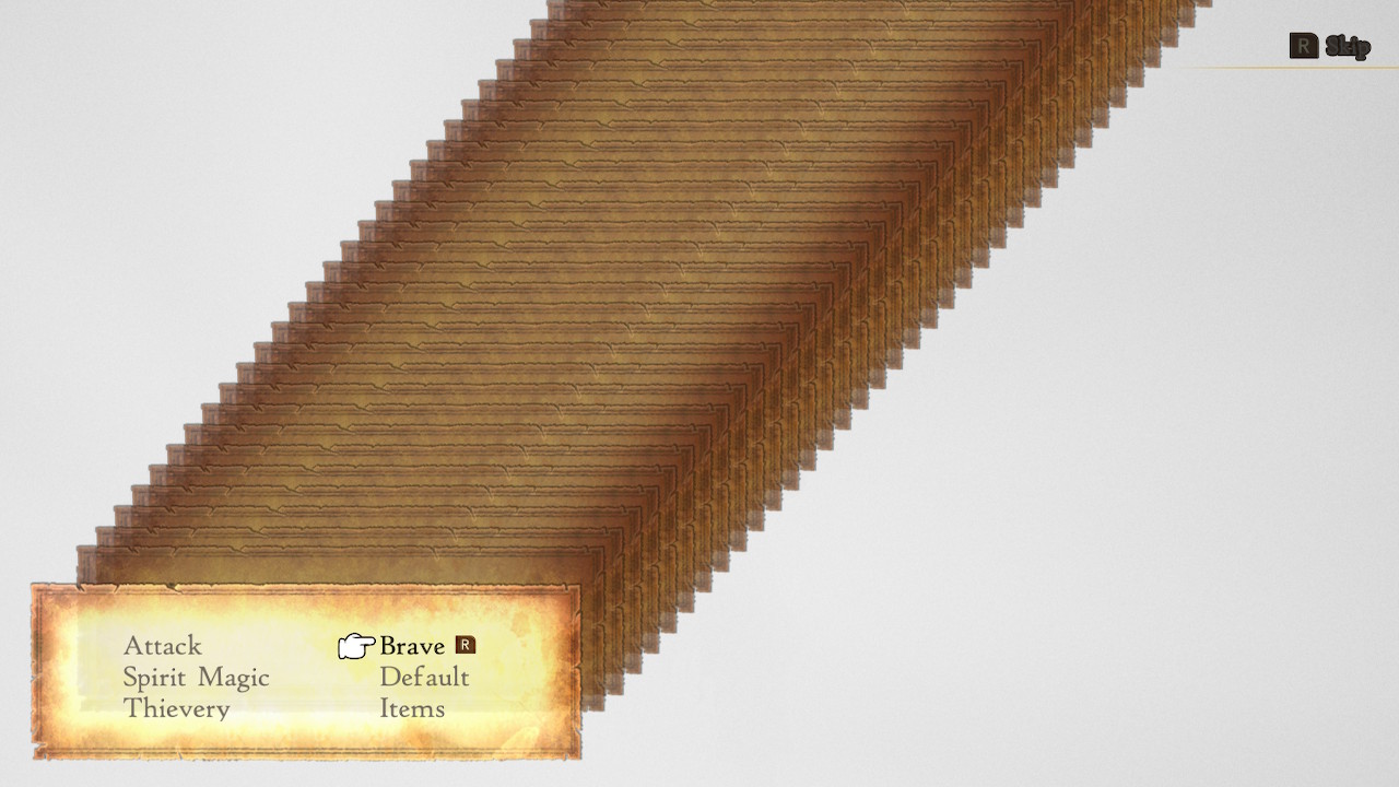 7章は結構短い。 けどその前にストーリー進行したら各地にクエが出てたりしたからその消化をした。これは正解だったかな。結局クエ侵攻後にB&Dで戦えるようになるS級の人が何人かいたからB&Dのカードコンプするのにもクエ進行は必要だった。 くまと戯れたり カードをコンプしたり 寄り道がたくさんあった。 本筋の方でもなんか強敵にカウントされてないけど強敵同様のシンボルになってるWikiwikiがいたり。 最後のボス戦は何かとネタバレになりそうだから控えめに、 このブレイブをおもちゃにしてる感じ好き。 で、セーブデータに☆がついて、タイトルに戻ったらNEWGAME+が追加されてた。 とまぁそんな感じだけど、アスタリスク解放の敵からドロップアイテム全部回収してたらレベルはカンストするわJOBLvも上げきるわでえらくごり押しできる性能にまでなってしまった。 戦略とは何なのかってレベルの火力1枚で全く困らないこの蹂躙っぷりよ。 アスタリスク解放のやつ各町・村に1個ずつだと思ってたから、1か所どこにあるかわからんくて結構さまよったよ。黒魔・Bravebearer・Bastionのやつ。ストーリーで通ったときには見てるんやろうけど覚えてないんよな。 https://drive.google.com/file/d/1TSofThYs3CIeEjYGZkY2engQ0Nwrtpxc/view?usp=sharing どれの動画載せるか悩んだけど、どれも大して変わんないから人数多いのをチョイス。やはりレベルを上げて物理で殴るに限るよね。 武器は斧使うときはこれってやつであって普段これ使ってるわけじゃない。 剣と杖と弓は抵抗持ってるのがいるから避けてるだけなので、短剣、槍、斧なら何でも。 火力的にはバサカパッシブ斧かドラグーンパッシブ槍が自動的にSになるからいい感じだけど、バサカは自滅入るとかドラグーンは最初にジャンプから入るのがうざいとか何かとマイナスがあるのであんまり使ってない。ドラグーンのほうは戦闘中につければジャンプしないから優秀。さすがにワンターンキル周回中に装備変えるのは時間のむだだから却下だけど。 アビリティは、 ・9999突破用のHellbladeのパッシブ ・単発技を範囲化できるBravebearerのパッシブ ・範囲化時に火力が落ちないBardのパッシブ ・斧SにするBerserkerのパッシブ を使ってる。数値だけ出したければ別のアビリティの選択肢も全然あるけど使いやすくて好き。 周回するだけならバサカの斧使えばアビリティ枠が空く(斧Sが勝手についてくる)のは良いんだけどHP減っていくとMP回復がめんどくさいから一応こういう編成。HP減るとシーフのMP回復技振れなくなるからときどきHP回復する必要が出てきちゃう。メニュー開く数はできるだけ減らしたい。 槍Sにしてビーストマスターの槍使うのもMP消費減ってお勧め。レンジャーのカウンター対策(麻痺)を装備でやってるときはこの槍使ってることが多い。カウンターで麻痺食らって狩り効率落ちることほとんどない(最初の一発で麻痺引かない限り大丈夫)のであんま気にせず対策入れずにやってる感じ。一回くらいまひっても味方のだれかの行動が先に来てエスナかけてつぎAdelleに回るまでにどうせ敵の番は来ないので。 もうちょっと拮抗してるときは物理カウンター回避するレンジャーのパッシブでも入れておくか装備で麻痺対策しておけばOKかと。その分MP消費増えるとは思うけど拮抗してる時期なんてあっという間に過ぎ去っていく。 次はGwidionの動画でも撮ってくるかね。 初見で何も対策せずにリフレクトリング盗めるまで粘り続けてたら30分もかかってビビった。全然盗めねぇよー。 まじめに対策していっても7分くらいかかってるから↑のアスタリスク解放系とかストーリーのボスとは比べ物にならない。ほんと強い。 ボスの物理反射パッシブがマジで厄介なんよ。3万とか4万とか食らわすと8000とか返ってくる。こっちのHPもちったあ考慮してくれ。 2021.04.01 Thu 04:01:00
