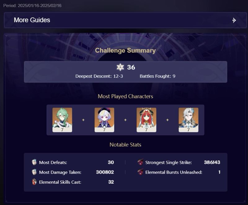 今回はマーヴィカとシトラリのデビューになったんだったかな。前回は1月なってから回りなおしてないから彼らは使ってなかったんよね。育ってなかったからシアターでも使ってないしわりとスケールとして使える場面で使ったのは初めてかな。 開花編成の次における火力編成としてナタのチャスカ融解編成が来たといっても過言ではないかもしれないね。シールドぶち抜くならやっぱりまだナディアのほうが強いけどそれ以外は大体超えたような気がする。 ちなみに今回ミスってチャスカで一回爆発してしまったから途中で退場した。記録には1回で出ちゃってるけどね。 どの攻撃かわからんけどチャスカが30万出してんのはうちにとっては福音となりえるね。この人は基本的に多段攻撃だからそのうちの一発が30万出てんのはいい感じ。 そういや編成は チャスカ、シトラリ、七七、マーヴィカ ナナは正直誰でもよかった。回復もあった方がやりやすいかなぁと思って入れてみてたけど別に役に立った場面はなかったから普通にシロネンなり万葉なりで補助した方が強かったんだろうね。考えなくていいのはシロネンだね。 シロネンとマーヴィカ合わせるのは何のひねりもないだろって言われそうだけど、爆発縛ってるから戦意方面でのシナジーはないものと同じ。マーヴィカは自動砲台として裏方やっとるよ。 12層置いておく。今回も開花の出撃数稼ぎのために出したけど全く刺さってないね。 戦闘風景も12層の最後だけだけどおいておく(GoogleDriveへのリンク)。自分が1か月後2か月後に同じ編成の火力比較するために。チャスカのダメージ386143もこのボスに出てる。当然だけどMelt反応の時だね。 これ見ると前半の開花がめっちゃ苦戦してるように見えるじゃんな。単体相手しかも片方氷ってのは開花には荷が勝ってるかもしれないけど。 今回の編成普段友好稼ぎで探索用に組んでる編成そのままなのよね。使い慣れてるし適当でいいかと。チャスカは友好10だけど他3人は友好足りないのを適当にくんどけばいいから楽。できればチャスカの弾丸に属性が乗るとこから2人はほしいけどね。 2024.11.23 Sat 11:23:00