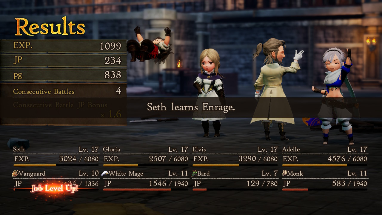 ちょっと寄り道が多すぎたかもしれない。 カードゲームも割と真面目にやってしまったからね。 最後シーフの彼の家にお邪魔する前にすでにAランク相当のポイント手に入れてた状態でストーリー進行が追い付いてねーからAにしねーよ。先に進めって怒られてた。 恒例となった砂漠の思い出SSをば。 砂漠の思い出というか、最初の街以降の思い出かな。例のモンクのやつとかもあったからね。 強くてかっこいいんだけど、この人同行人にいると敵が勝手に倒れていくからやりたいことできんのよな。 モンクの人の思い出。本人の姿じゃないんかい。 モンク衣装のアデルがかわいいんすよ。普段職の衣装にならないように設定変えてあるけど。 詩人とテイマーは体験版でも紹介したので省略。 この強敵だけであったときにそのまま勝てそうだったから倒しちゃってたやつ。今思えば盗むとかあるから後回しにした方がよかったかもしれない。 イ、インナーカラーさん?!カードゲームたのしいから、それに引きずられてこの人も実は好印象。言ってる事無茶苦茶だけど。 4回続いた時の記念撮影だったけどなんかいい感じでSethが背中から落下してるような絵面になった。 今作の人達アスタリスク失ってもサブストーリーに絡んでくるの面白い。前作とかは割とあっさり退場してたような気がするから。メインストーリーからは退場してると思うけどね。この二人はアスタリスク失っても身なりがしっかりしてるんよなぁ。そういう意味でも両極端よね。襤褸になる人たち(テイマーとか詩人とか)との。 シーフ宅へ行く前にAランク相当のポイントがたまったときの天の声のあきれた様子。要約:はよ進めや。 早くてぶれちゃうシーフ。こいつ強かったなぁ。 俺も体験版で使ったけど、さすがにBP0より下にならないように修正されてた。というかマイナスになる仕様だったら↑のシーフもっと強かったと思う。戦闘中もめっちゃ使ってきてたから。バーサーカーはネタバレになりそうだから画像は省略。 最後に木を切り倒せるフィールドアクションを教えてもらって砂漠はおしまい。 最初の街の思い出の記事で木が邪魔だったって言ってたところあったけど、これで先に行けるようになったのでついでに取ってきた。たしか杖だったかな。次の街の奴より強いから撮るならこのタイミングだね。もう一つでも進んだら同等のものになりそうだから。 こうして振り返ると砂漠ボリュームたっぷりだなぁ。時間かかったのも頷ける。 2021.03.02 Tue 03:02:00