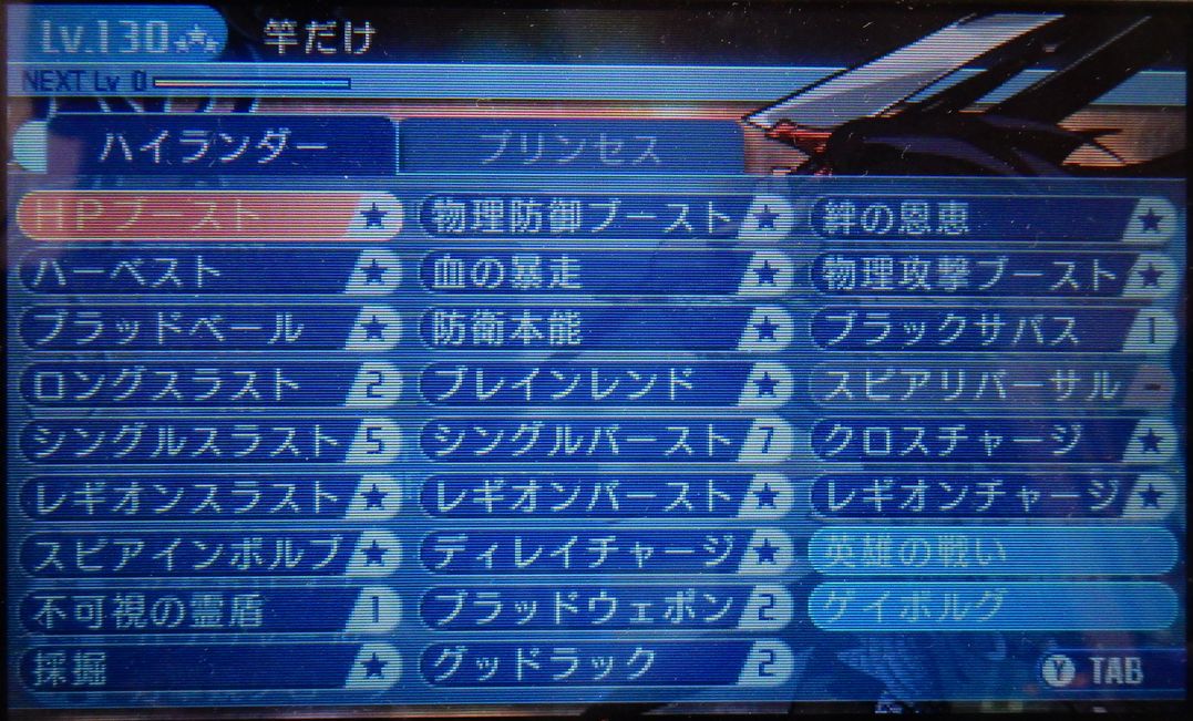 レベル99で引退した主要キャラ5人のレベル130 無事3竜倒して130までキャップが解放されたので1キャラずつ公開します。 ってやつの第2段はハイランダーさんです。 こいつはこの記事公開してる頃もう一度引退してると思うからそのまま上げちゃえ。画像編集めんどくさいだけです。 はい。これ、記事書いてる時にはもう装備変わってるんですよね。ただ武器と軽鎧は専用の多分最終なので変わらないと思いますが。サブ職は見えませんが「プリンセス」(プリンスではない!)です。ハイランダーで勝手にランダムで発動するバフスキルをトリガーにTP回復するってのが便利でプリンセスにしただけなのでプリンセスのスキルはごく一部しか取ってません。かねてより主張してますがハイランダーがハイランダー単体として完成され過ぎててプリンセスに割くSPの余裕がないって感じです。 ヒーローでも書いたかもしれませんが、レベル99で引退してそのまま130まで育てた感じのキャラです。130で引退したらボーナス増えるんじゃないか疑惑の確認のためにこのあと各地のFEOからレア素材巻き上げ終わったら引退してみる予定です。 レベル99で引退するとステータスに+9、スキルポイントに+6それぞれボーナスが入りますが、果たして130だとどうか。 ちなみにスキルはこんな感じ ね。プリンセスでしょう?見てのとおりプリンセスは三つしかスキル振ってないです。 130になってから初めて振ったスキルとかもあるのでこれを参考に99のキャラのスキルを振るのはあんまり意味がないと思います。PTにもよりますしね。 例えばスピアインボルブ。これは属性攻撃のキャラがいるならありですが、俺の探索PTって途中でゾディアック抜けたので属性攻撃ほとんどいなかったんですよね。なのでレベル120超えてから余ったしヒーローが属性攻撃手に入れたからじゃあ振ろうって思って振っただけです。必要性はそんなにない。突が×の敵とかでやることないときとかくらいしか使わないです。あとは自身もPTもHP減らしたくないとかって状況。そうでもなきゃレギオンチャージでも撃ってる方がダメでる。シングル~~をカンストさせてないのは雑魚敵に気軽に打つためです。消費TPが馬鹿にならんので。 悩んだ箇所といえば、ロングスラストを振るかどうか、グッドラックを振るかどうかあたりですかね。どちらも使う機会はほとんどないですが。グッドラックはレア素材集めには使えたかもしれません。その場合血の暴走は取っちゃだめだと思いますが。 素材集めPTの火力要員は別のハイランダーでやるべきと思います。こういう振り方したキャラは脳筋思考停止突攻撃要員がよいでしょう。 99の時のスキル振りの方が参考になるかもしれませんが・・・残念そんな昔のことは忘れたのですよ。この記事書いてる時点で99突破したのが1週間前の出来事でこの記事公開されるのはさらに5日程度後の予定。もう忘却の彼方ですわ。 2018.08.18 Sat 08:18:00
