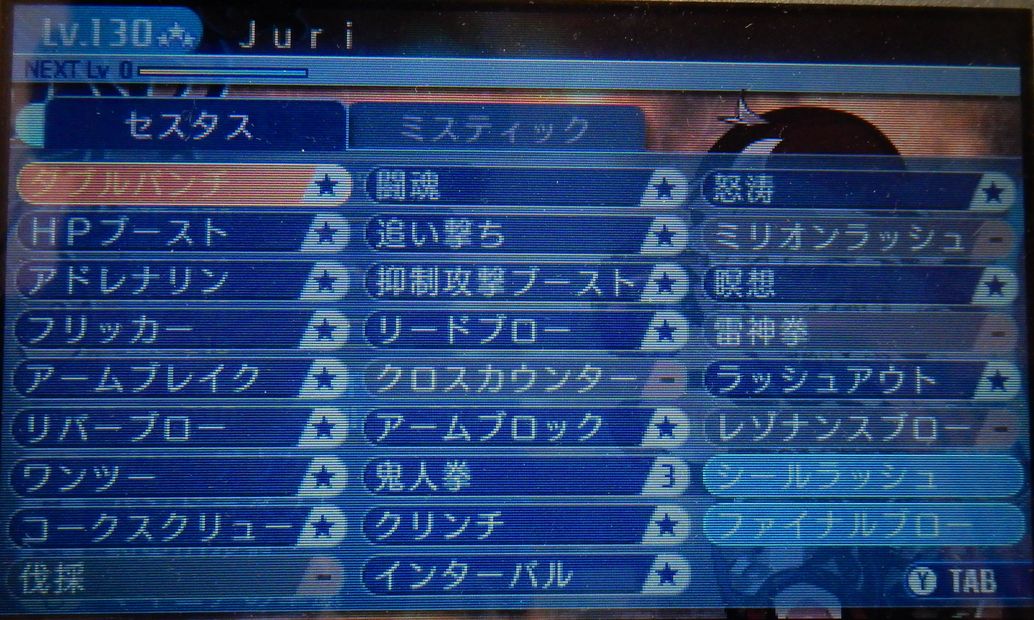 レベル99で引退した主要キャラ5人のレベル130 無事3竜倒して130までキャップが解放されたので1キャラずつ公開します。 ってやつの第3段はセスタスさんです。 こいつもこの記事公開してる頃もう一度引退してると思うからそのまま上げちゃえ。画像編集めんどくさいアゲイン。 リーパーと組んで勝手にレア素材条件満たす君ですよ。条件のあたりもつけずに縛りや麻痺が条件で知らずにレアドロゲットって流れは結構助かります。この点ミスティックだと狙った状態異常にしさらすのであんまり意識しないでって形にはならないんですよね。意識して特定の異常・縛りをだすならミスティは抜群にうまいですが。 あとはこのキャラ早熟なんですよ。ストーリー的にね。某森でまだ資金が1万もないときにボス手足を縛って倒すと簒奪の王腕が手に入ってそこから54万溜めるだけで最終武器が手に入る。そうなりゃしめたもんで、本来縛りに重きを置いてるセスタスが火力でも役に立つ。 さすがにレベル100超えたあたりで装備ワンランク以上下のハイランダーにも火力で劣るようになってきますがそれまでは過剰戦力です。火力で負けても本来の目的である縛りは便利ですしね。 Vの頃からすると若干ワンツーの追撃率落ちたかなぁといったところですね。縛り率は元からあんまりないのでおまけ程度に考えれば十分。セスタスで満足に縛ろうと思ったらリパで縛弱かけないと厳しいですね。そうこうしてるうちに倒しちゃうので結局クリンチに頼ることになったりしてね。なかなか狙うと難しいです。 狙わずに物のついでとばかりに縛るからこその強みですかね。 装備はLuc重視です。見てのとおりですが。かといってほかもおろそかにするわけではないのはアクセサリの選択を見てもらえばわかるかな。Luc一辺倒なら運とTP上がるやつ使いますからね。TPもあって困らないのでそっちもありだと思います。 スキルはこんな感じ。サブ職のスキル振りは悩みました。 セスタス側でほしいもの全部振った余りでマスターまで振れるスキルだけに限定したって感じですね。これもハイランダーと似たような振り方です。 セスタスのほかの振り方候補としてはレゾナンスを撃つかどうかくらいですかね。その時はクリンチ、インターバル、ラッシュアウト、怒涛あたりの補助的なところから削っていく感じですかね。 HPはクッソ高いように見えますが、うちのPT、ハイランダーが割合でHPもって行く(レギオン~~シリーズ)ので、防御の低いこの子は敵の攻撃でぽっくり逝ってしまいます。そんときゃそんときですけどね。自分で縛って敵の攻撃をいなさなかったのが悪いってことで。気になるようならLuc削ってでも防御高めの装備にすべきでしょう。特にボス戦での縛りをこいつには期待してないので。勝手に縛られる分にはありがたく利用しますが。本当にダメージを期待しないなら後衛でもいいと思いますよ。後列に届かなくなりますが。 ちなみに戦闘中のスキル選択ですが、ワンツーの追撃よりリードブローの追撃の方が強いです。なので、二つ以上縛り又は状態異常がついてる敵にはリードブロー>ワンツーと思っていいです。ワンツーが確実に全部追撃出してくれるなら別ですけど、そんな奇跡はほぼ起きない。1個縛り状態でリードブローを撃つかどうかは敵による・・・またはもっと縛りたいかどうかによる。そんな感じです。リードブローだといくら打っても追加で縛ることはないですからね。 慣れてくると強いです。というのも縛ればセスタスのアドレナリンとミスティックのTPリターンでTPががっつり回復するのである程度縛れる敵なら、いっそワンツーを打ったほうがTP回復するまである。まぁ変態です。 PR 2018.08.20 Mon 08:20:00