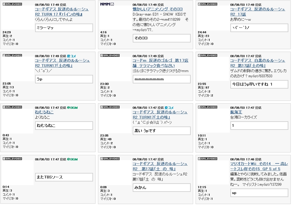 どうもニコチュウです。(漢字出すのメンド草 ある日のランキング(確かマイリス) 当時全力で保存したファイル名から察するに7月31日らしい・・・ ↓これ↓ サムネがwwwwwそっくりすぎね?wwwwwwwww トレスですね。分かります。(違 課題に飽きてなんか面白いことないかなぁと見てみた・・・ 今日(8月3日)の17時50分ごろの新着動画リスト・・・ 公平に全部サムネ白抜きだけです。 何とは言わないけどお前ら上げすぎだろwwwww 実際一個も見てないからダミーばっかりかも知れんけどね いやはや、これは酷いと思ったw 最近ランキングに真新しいのが少なくてさ・・・ 暇つぶしにならないんだよねw これも夏休みのせいか・・・ あ、そうそう セカキュウ2クリアしました。(セカキュウ→世界樹の迷宮) 世界樹知らない人はお帰りください~w ただ馬鹿みたいに書いてるだけなんでwww とっさにケータイで撮ったんで汚らしいかもしれないけどw こんな感じで図鑑コンプの褒美として公国の守護証ゲットして真エンディング流れて終わり~。 あとはやり残したレベル99キャラ作成をぼちぼちやってくくらいかな?w 暇があったら縛りプレイでボスとか倒したりしますー^ 結構いろいろやられてるから面白こと思いついたらってことで。。 以下おまけw よく使うキャラとか。 ・ダクハン…クインボンテでのオルボン縛りエクスタコンボ用。通常攻撃代わりのアナコンダも弱くはないから十分通用して便利w燃費よすぎワロタwwwwwジエンドも効く相手にはかなり便利。レンジャーとセットでアザステオルボンは反則w ・レンジャー…アザステ良いよアザステ。ブッチャケ個人的にザミエルボウが弓最強ジャマイカと。パワーショットで攻撃も十分いける。サジ矢は最強とか書いてあるけどブッチャケ1ターン以上戦闘することほとんど無いんで要らない子w危機感知系でかなり戦闘安定。火力無くてもPT入れる価値はあるとオモw ・ブシドー…単純にバランスよすぎ。通常攻撃でレンジャーのパワーショットくらい攻撃力ある。武器が迷宮装備より強いのあるのも問題w天羽頭おかしいだろwツバメ連打してもアルケミと同じくらいは戦えるから燃費悪くはないと。防具緋緋色金統一でSTR以外が低目って言うステの弱点も相当補えるしwツバメはアルケミの核熱超えるダメ量産できる(ブッチャケFORCEの一閃より強い。STR必須の1振りだけでもカンストするのが鬼過ぎるw卸しと鬼炎マスタで汎用性上がりマクリング ・アルケミ…全下級マスと解析のコンボが便利。全体雷マスでも取っといて後は核熱あれば十分雑魚からボスまで。ドクマと組み合わせないと燃費厳しいけど、後半はそう気にならないかも?wなによりカスメの変化と解析のコンボがいいw全的キャラ相手に弱点つけるしアイテム収集には欠かせませんwwwwwただ火力はやっぱブシドーに劣るよね… ・ドクマ…転化最高wこれあるとかなり長い時間もぐれるw鬼力化でダメ跳ね上がるしブシドーとかアルケミみたいな職いるなら連れてって損はナインジャマイカと。回復もあるし。だんだん相手に攻撃させたら負けみたいな雰囲気になっていくから回復あんま使わないんだけどwカスメの呪いとか組み合わせて永久機関が出来上がるのがうれしいwカスメ居るとそれ以前にアイテムいっぱいになって帰る羽目になるけどねww博識良いよ博識。 ・カスメ…変化・軟化・ペイン・罪咎あたりが便利。テラーもいいけどやっぱ1ターンキルが普通になってくると邪魔wただ杖で遅いから軟化は滅多に使えないかもしんない。ダメージの上昇でいったら味方強化系の方が強いしねん。ただ博識持ちでメディックみたいにゴミじゃないから十分PT入れる価値はあるんでねーかとw後衛でHP1にしてペイン砲台とか反則wHPフルブーストで2000ダメコンスタントに・・・w抵抗持った敵も居ないからちょっとチート臭が・・・www ・バード・・・どう考えてもギフト用です。お中元にどうz(ry メインはホーリーギフトでの経験地稼ぎ用wあとは蛮族でカスメのペイン強化とか、攻撃力アップがPT全体だから便利だったりとかくらい?もう引退レベル底上げ用のキャラとしか見れなくなってますw ・ペット・・・オルボンとかで足縛った状態での大暴れが強すぎる件w序盤弱いけどレベル50くらいからダイブ化けるwでもあんま使ってないな・・・。なんに使うかって言うと壊攻撃で止めが必要なレアドロップ用wwwwwサーセンwwww弱いとこはパラディンのシルスマでいいんだけど、ヘカトンとかねあれ位になるとペットとかソードマン斧が楽w こんなもんかなぁ。普段はこの中からいろいろ組んで遊んでる感じ。(最初の3キャラは大体常時入るけど) 例えば30階のボスに行ったときとかは、 ダクハン・ブシドー・ドクマ・レンジャー・カスメ やったかなぁ・・・最近ずっとレベル上げしかしてなくてバードPTはいりっぱなしだからワカンネw 普段の狩りPTだとドクマはPT入らないから回復皆無っスwアイテムもネクタル2個くらいしかもって行ってない。。 どうせ食らわないし?w