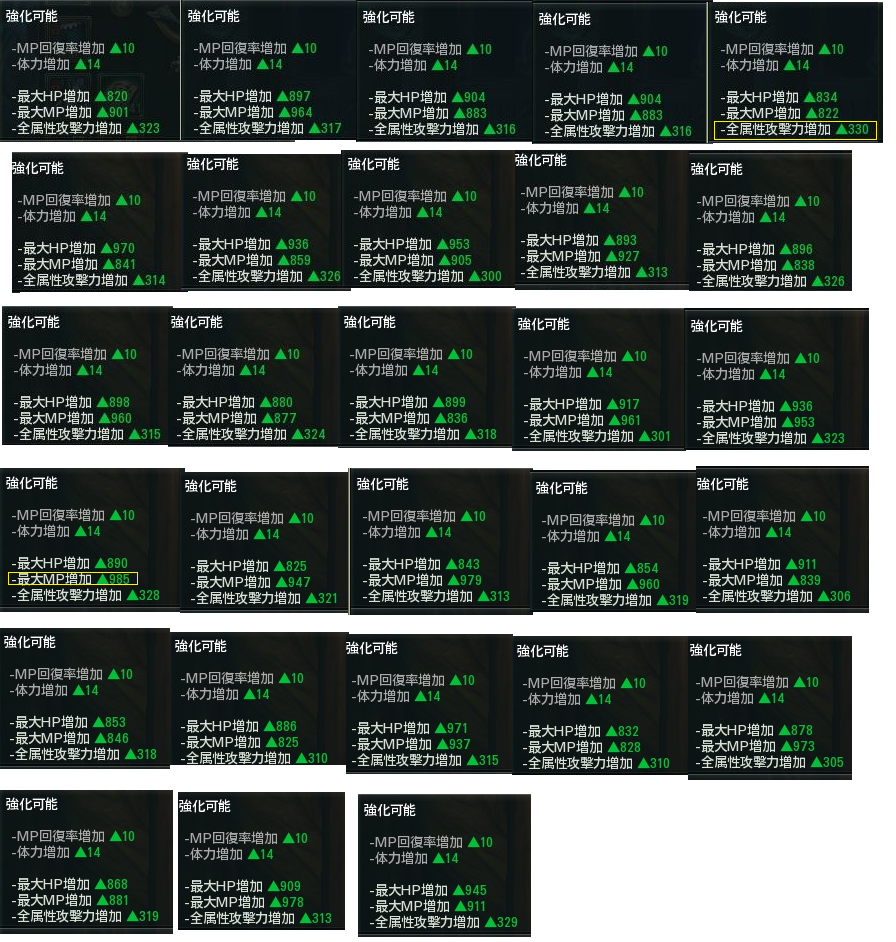 確定ではないけど属性は330が上限っぽい? 実はもっと上限高くて上限付近は出にくいとかあるかもしれないけど。 Pアクセで属性300使ってるのと入れ替えるとすると0.5%の上昇。ないよりはいいけど上昇量としては微妙でしょうか。 一番のトリッキーなところはMアクセ相当といいつつも、 ・知能上昇がないこと ・HP回復率がないこと ・体力が上昇すること ・属性攻撃力が高いこと ・防御の数値が高いこと ・強化なしならカオス18個で再配分できること といったメリットデメリットがあります。 それぞれの数値についてみていきましょう。 防御数値 ・物防&魔防266 これはレントのPレア相当です。レベル20から装備可能という観点で言えば十分高い方と考えてよいでしょう。6M相当のリングを持ってる人はそっちの方がいいかも。 固定OP ①MP回復率10 これはサラド以降のアクセと同等です。今後もこれ以上はそう望めないでしょう。 ②体力14 これは今までにない効果です。リングで体力が上がるとはエゴストーンかなって感じですね。ただ代わりに犠牲になったのが知能ということでこれは職によってはMP最大値の減少として響いてくるかもしれません。 変動OP ①HP&MP最大値上昇 おそらく上限は1000か999。30回ほどカオスを使った結果でいうと4ケタに乗ったことは一度もないので1000はないのでは?と思っていますが、変動幅が200程度あるので詳細は不明です。どちらにしてもほぼレントと同等と考えてよいでしょう。 ②属性攻撃 カオス30回ほどで実際に出た下限は300、上限は330でした。もっと上も下も出るかもしれません。この数値は加減でさえその他のアクセの上限以上ですので有用。ただし、この数値60で1%なので、330が出たとしてそこまで大きな影響はないです。320以上を狙いつつHPやMPの上限が高いものを狙った方がよいでしょう。カオス消費少ないので妥協点は高めでもOKですが、それに見合った効果は属性に関しては薄いと思います。 欠点 ほかのMアクセにあってトリニティーにないもの。 ①知能上昇がない 前でも書きましたがなぜか体力上昇です。うれしい職にはうれしいけどなぜ・・・といった思いはあります。MP回復率30程度では回復追いつかないからMP最大値をがんばって底上げしてる職なんかはこの14の差は結構響くのでは。 ②HP回復率がない 通常MアクセというとHPMPの固定上昇もありつつの両方回復率が付くって点がでかいんですがトリニティーにはその一角がかけています。ここが大きなデメリットになる職は多いでしょう。どの職にもあって困らないHPに関するものならなおさら。 ③属性防御 いずれのMリングも2~3%程度の全属性防御があります。これが属性攻撃してくる敵には頼もしい。それがないです。普段意識してない人には不要かもしれませんが。 ④勢力防御なし これはイベント系Mリングもそうなので特に欠点というほどではないかもしれません。ランド、カルス、バートンあたりと比べると欠点になりえるかもしれません。 さして苦労せずに手に入る割には素晴らしいアイテムです。欲を言えばHP回復率もしくは全属性防御あたりがあるとうれしかったなっていうくらいでしょう。 続きのところにカオスの結果をいくつかのせておきます。参考にどうぞ。 Comments