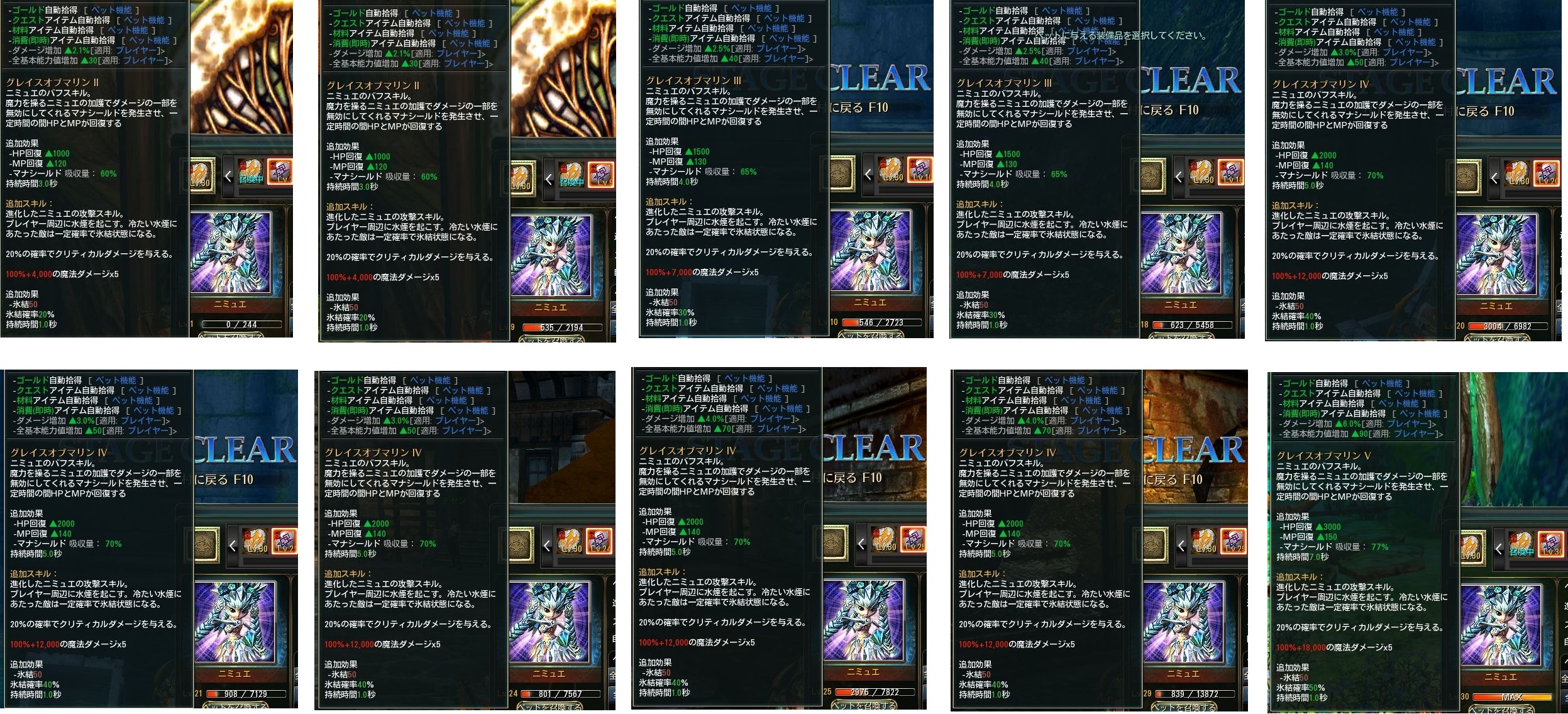 ニミュエ進化後のまとめ。変化を見るのが目的なので変わらないところは省略。 続きに画像があるので、変化のないとこのテキストの書きぶりはそちら参照。