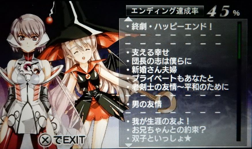 FEが発売したのでどこまで行ったかを公開しましょう。 はい。3スクロールじゃ収まってませんが、その辺に何もなかったので割愛。クリアしてるエンディングは全部読めるようになってます。 2枚目(中央)と3枚目(右)のポーンと一杯空いてるところにはPSのころのルートのエンディングたちが来ます。 できてないのは、妖精2タイプ、単独エンド各妖精を添えて(4種)、一部の個別キャラエンド(召喚師救済ルート)、旧ルート全部です。 デュルクハイムのルートは全部できてるはず。選択肢はしらみつぶした気でいるけど戦闘途中で分岐するやつとかあったらみれてないのもあるかも。でもリスト見ると結構きれいに並んでるのでそろってると思いたい。 PR Comments