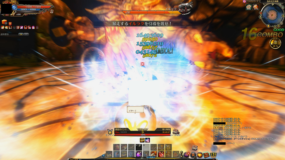 6陸だと勢力増し増しにできたから割かし簡単に超えていたダメージ1億(100M)超ですが、7陸になってなかなかでないねーなんて話をしてたんやけど、この度ようやく超えました。 たまたま取れた画像の時に呪符使ってたりしてますけど、黄金期でさえあれば特に変なバフアイテム使わなくても行けた。フューリーは多めに見てもらえれば。 ちなみに9000万くらいの表示はこう。 エルタでEショックP本の最終段がうちのキャラだと一番火力出るのでそれでやってます。 相手は別に誰でもいいんですけどイルラクにしてます。 フューリー使いながらボスポータル踏んで初手Eショックだったかな。ボス倒すまでにもう一回ショック打つけどわかりやすいから最初のほうで見てる。あとの方だと雑魚沸いてたりしてだれに当たったダメかよくわからんくなるんよ。雑魚のほうは1ヒットで倒れるために黄色の固定ダメでないから区別はつくっちゃつくけど。 んで、1億超えた時のがこう。7陸でも桁が見切れてますね。6シャドウの頃からそうだったんですが、6のときは10...じゃなくて1億数千万出てたから擦れた時のダメージと似たような数字の表示だったんでそれはそれでもやっとしてた時期もあったなぁ。CRITICALの表示とかぶっててちょっと桁数えにくいのは愛敬ってことで。 なんかエフェクトのせいでキャラがいい具合に見えなくなってたのであんまり加工してません。動画撮ってたやつを一時停止もせずにSS撮ったものなんでなんか変なタイミングだったのかもしれない。一時停止するとシークバーとかその他メニューが邪魔いんよ。 全然関係ないけど、HPとかちょっとだけ違うのは使ってるソウルが違うから。 それぞれ何使ってるときのやつか定かではないけど固定ダメージの感じから一個目が栄光か追憶、だけど栄光じゃMP減らんから追憶かな。二個目が英雄か世界?英雄最近使ってないからわかんねーや。確か英雄じゃMPはあんなに減ることないと思うから世界かな。 単発ダメすごいだけでDPSは全然なのよなー。Eショックでバンとやってガンするのと同じ時間で1ヒット当たり1000万で100ヒットとか出してる職もあるやろし。このヒット数の少なさがエルタのいいところだし好きなところでもあるんだけんども。エルタがリワークされて多段ヒット職になったら愛せるかわかんねーよ。 低ヒット数の時代よ来い。 PR Comments