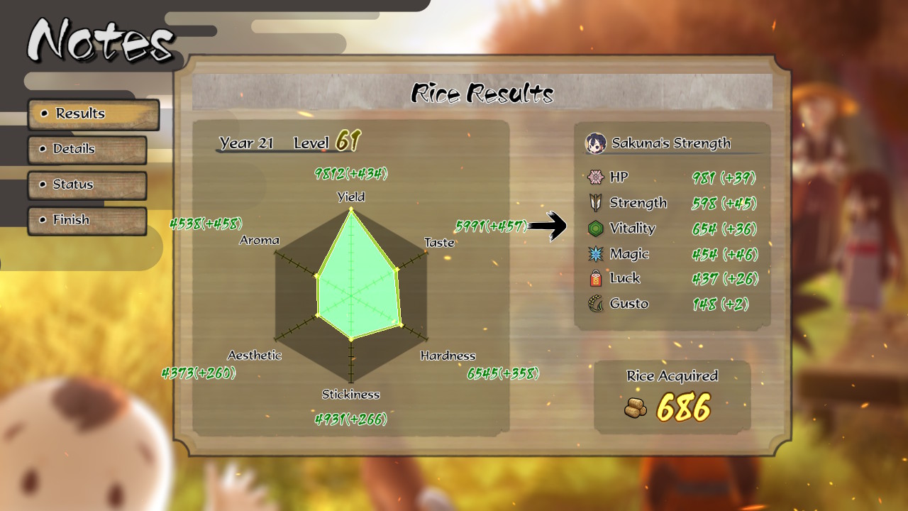 ステータスはそこそこ高くなったかなぁ。 ほぼ作業になってるけど週1だったら動きが見えるかな。ってことでステータスのSSをば。 やっぱ簡単にPCに持ってこれるようになったのがいいなぁ。今ちょうど水車にかけてるとこだから1年前くらいの収穫の時のSSだけど。 それと天界ミニゲームをwave 1から100までぶっ通しでやってみた。 何途中で得点カンストしてんだよ。5ずつ刻めるからぶっ通しでやるやついねぇってか?ただこれカンストしたのwave 90くらいだったからHPボーナス結構もらわないとwave 100でもカンストしないかも。 カムヒツキの面は1個強化に使うからもう一個手に入るかは大事なとこだと思うけどちゃんと手に入るようで。 これに関しちゃ+の効果は面白いと思うけど空き枠が0になるのが欠点で両方持っておきたいんですよね。他の面はだいたい元の効果か元の効果の強化版が残るから+だけでいいんだけど。ただ面については面の特殊効果+20%がなくて5%だけだからそこまでって感じかなぁ。後%が関係ない固定効果(のけぞらないとかほかの部位の強化とか)をつけとくのが無難かなぁ。 今はダメ稼ぐために狐面が常用になってるけど。この狐面+の効果のクリティカル時弱点つくやつってSprit Boughsにあるのかな。今持ってないんだけど。 そういう意味では防具の特殊効果上げるやつも持ってないな。片手武器、両手武器、頭と面はあるけど。 このところはそんな感じ。レベル99目指して頑張るぞい。ステータスはどうでもいいや。多分バランスよく伸ばしていった方が総合ステータスは高くなるんだろうけど、ドーピングでいくらでも伸ばせるしまずはレベルカンスト狙いかな。稲で遅れがちなLucとGusをドーピングで伸ばすって感じか。Magは鶴の羽使いまくってるのでだいぶ追いついてきた。毎日StrとMagの肥料は100を2回やってる。時期気にせず。Cloudy Crystal2, 3個ぶっこんで1個+50のアイテム入れりゃいいだけだから、Amagaeshi200層以降で無限に手に入るしね。 ただ一時期ぶっこすぎたAmberのせいで土壌の根、茎、葉すべて15万超えててもう2年くらいAmber 0で肥料作ってるのに全く数値が減らんのよ・・・。これどうやって落とすん。毎年過剰に成長してマイナス補正食らってるっぽいから一回0にしたい。助けて。それ抜きにしても別に毎年400ずつくらい伸びてるからまぁまったり行けば別に困ることはないかもしれないけどね。 PR Comments
