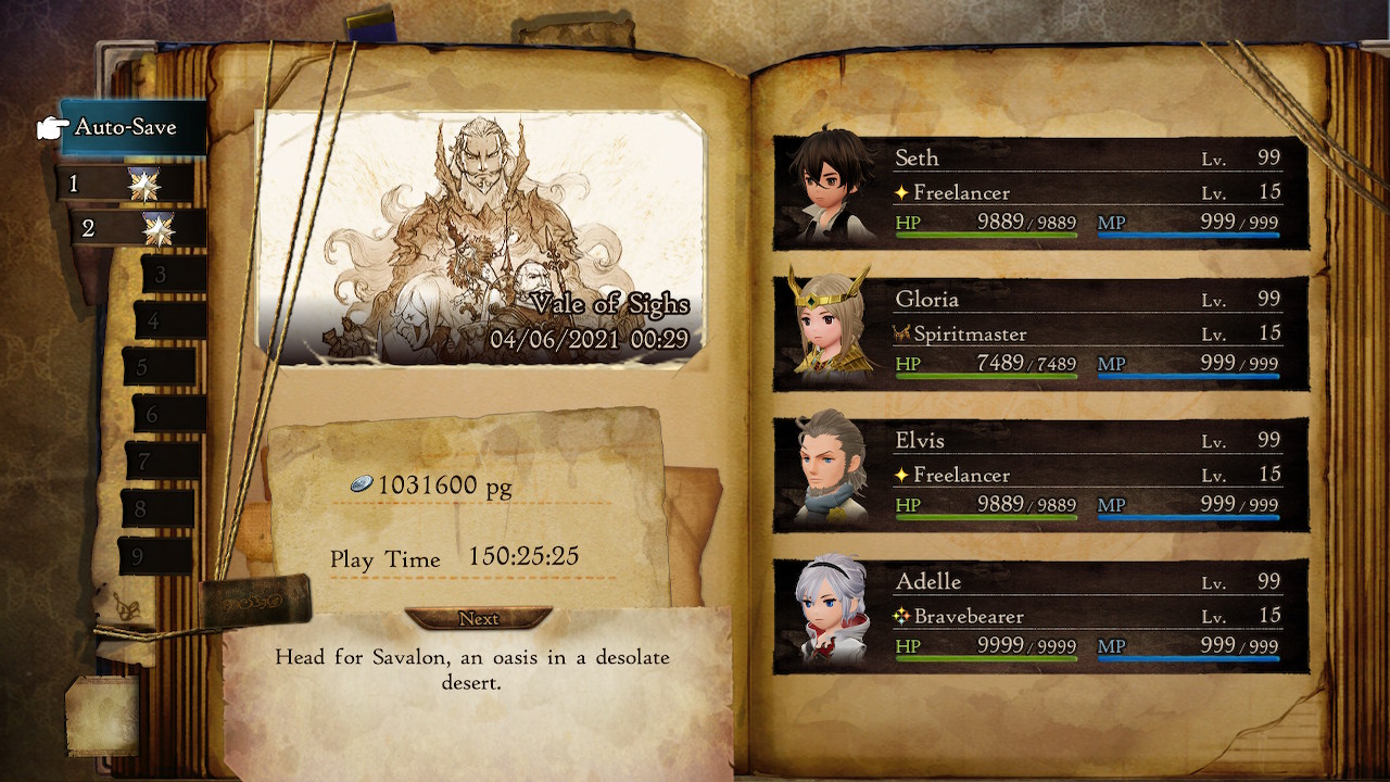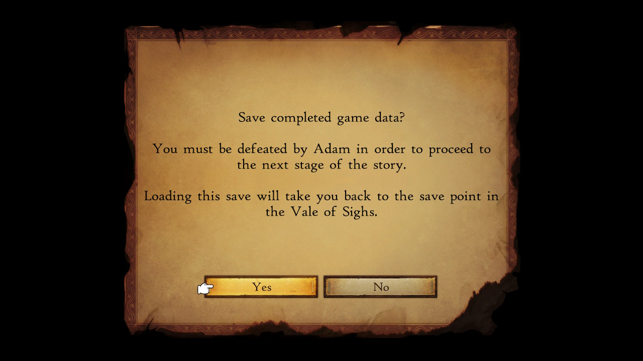ほらほら、前の記事で書いたじゃん。 ロード画面にAdam撃破エンド用の絵が用意されてるってやつ。 これ。いい画なんよなぁこれ。あの妖精がいないのもいい。Hologradチームって感じで。 Vale of sighsってこのAdamと戦う場所の名前だけど、この地名のつけ方好き。 Adam倒してしまった時のメッセージ。2段落目に書いてあるのがあーた空気読んで負けなあかんよ。って感じ。そこまでいうなら負けたことにしたらいいのにそうはならずにエンディングながすあたりが最高にBravery Default。 この時流れるエンディング見返してみたらちゃんと普通のエンディングと同じ人たちが流れてるんだね。主人公たちの声優(日本 英語)が順に並んでた。全く区切れなくダーッと流れていくから読む余裕全くないけど。 あとは時間軸逆転してるけど、1周目終了前のAddelle。うちのPTの攻撃面を一人でまかなっていた勇のもの。 Speedが違いすぎて2周目レベル引き継いだのに全然火力でんのよ。 PR Comments