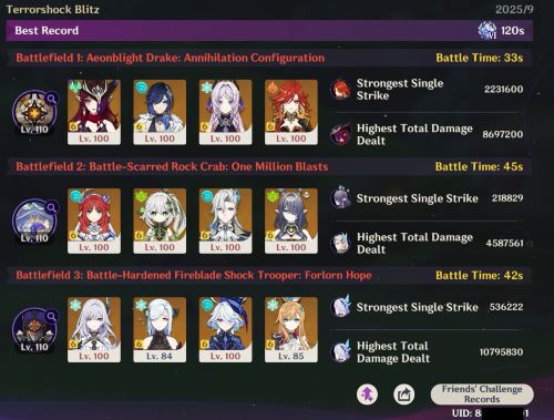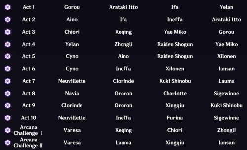 10月の幻想シアター1日か2日にやってたけど忘れてた。 今回は雷、地、水。この後実装されるフリンズ接待も兼ねた構成なんだろうね。引く前にやったからフリンズいないけど。改めてやり直してみてもいいかもしれない。 そして今回からアルカナが追加になった。これは特にうれしい効果とかはなくてコレクションだけかな? 2ステージ分追加になってるけど、もらえるカードは1枚。選択肢が与えられるだけだから初回の今回は別にどれもらっても初めてだし1ステージだけクリアでも問題ないんじゃないかな。プライドが許すかはさておき。 中盤は全然フラワー足りなかったけど後半は余ってたね。 こういうランダムピックのステージにおいて雷は層がだいぶ厚くなったなぁ。頼れるキャラが複数いるのうれしい。 全体の難易度的にはそこまででもなかった印象。ただ今回はアルカナの追加ステージがあったからその分キャラを用意しないといけないっていう難しさはあるね。どのくらいの難易度かやるまでわからなかったしね。 あとは最後に飛竜のボスが控えてるのを把握して倒せるキャラを残すようにするくらい? 各ステージの編成はこんな感じ。 今回中盤が難儀したなぁ。アルカナをだいぶ早い段階でやっちゃってキャラ足りなくなってたからね。 ボスにどうしても出したいってわけでもなく難易度高い雑魚に気軽に切っていける、けどちゃんと殲滅力ある雷電とかセノとかクロリンデの存在がまじでありがたい。Act10の飛竜はフリーナさえいれば何とでもなるやろと思って油断してた。実際そのとおりだったけど。 こうやってキャラ並べてみると水が厳しいなぁ。ヌヴィとフリーナ、夜蘭くらいしか頼れるキャラがいない。あとは補助とか回復がメインって感じでね。開花なくてもニィロウが火力枠で選択肢に挙がるくらいには層が薄い。行秋とか重宝してるけど火力枠として頼りになるかというと少なくともうちの行秋の練度では厳しい。確かムアラニとかニィロウとかもちゃんとキャラプールとしては選んでたはずだけど引く前に終わっちまったのよな。あとお兄様も。 アイノはこの時まだ全然育ってなかったけど今はそれなりに火力出るようになってるから☆4の水火力枠としては結構期待してる。 後日フリンズ使って幻想シアターとか幽境とかにも行ってみたけど・・・ 雷共鳴でのフリンズめちゃ使いやすいっすね。セノと同じくチャージ効率そんなに盛れてないのを共鳴でごまかせるのがでかい。これは幻想シアターでも活躍間違いなしだよ。探索でも使いやすい。ただインファイトとするキャラとしても打たれ弱い(アーマー/鋼体がない)からシールド欲しくなるけど。雷&月共鳴を作る意味でもシールドって意味でもイネファと組ませるのはシンプルにいい感じ。 スキル打って特殊爆発で追撃していくのはヴァレサと似てるけど編成気にせず戦えるヴァレサと月感電判定を一人で扱えるフリンズとすみ分けもばっちり。どっちも強い。 幽境・・・3番目のやつ感電するより凍結でごり押した方がタイム良いのね。 なんか知らんけど30秒くらいタイム縮まった。3番目のボスにフリンズを試したくて遊びに来たんだけどね。思わぬ収穫だった。 2番目も開花編成じゃなくてギミックをラウマに丸投げして火力押し付けたほうが強いかもしれないけど、せっかくの開花接待だからこのままにしておくよ。二度とこないだろうし。 PR Comments