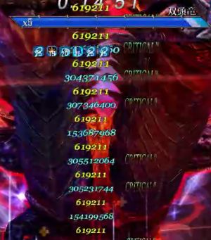 なんか最近のアプデ?メンテ?でダメージ表記が1億の桁で切れて見えなくなってたのが解消されたらしい。 適当に竜Hにぶっ放してみたところ確かに3億の表記が見えてる。これは良いですなぁ。 今まで非クリで50M表記でクリありで02Mとか03Mとかってとき実際一番上の桁いくつかわからんかったからね。じっさいは非クリで150M、クリありで300Mちょいだったんだね。 出てる数字は大きければ大きいほど気持ちいいんだから。 ホイールダンスではこんなもんだよね。調整入った中では倍率低い方だし、属性固定だし。かといってほかのキャラをやるかというとそんなことはないんだけどね。 PR Comments