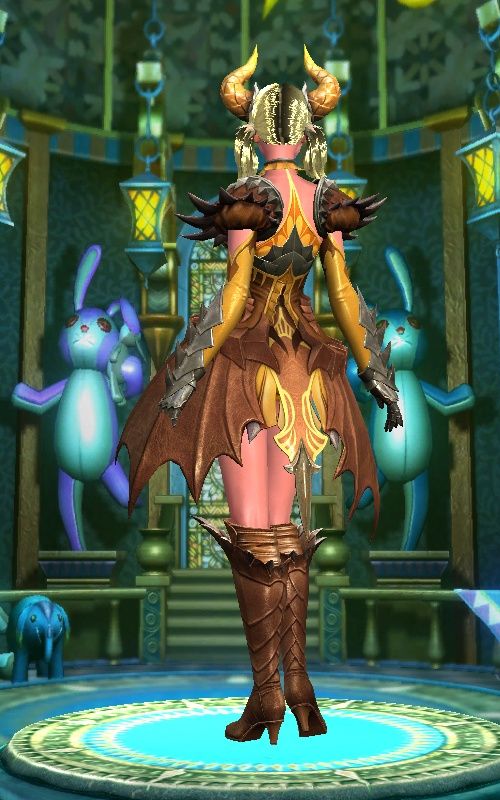 そのうちダーツに実装されそうだけど、さんざんアケネ商店にちらちら見えてて気になってたイエローデインラッドミスティギアを交換してみました。 御託はいいからSSだ!ってことで参考図をどうぞ。 適当に空いてたキャラに全身着せてみただけなのでキャラメイクによって全然違ってくると思いますのでその点はご承知おきを。 ※できるだけ縮小を避けるため不要部分をカットしてます。 村だとこんな感じ。角が光ってることはわかるかな。微妙にですが肩あたりのとげも光ってます。デインラッドはこの光がかくいい。ファイターの目とハンターのコアの感じが最高ですが女性キャラはどれも控えめですよね。 公式のギア画像はログイン画面がよくつかわれてるのでそっちだとこんな感じ。こっちだけにしようか悩んだんですが、光ってる感じが全く伝わらないので村画像も残しておきました。 補足。 髪型固定。色は元の色がほぼそのまま出ます。少なくとも↑のような金なら。他の色は試してないのでわからないです。 事前に見てたのより頭のパーツがいい感じだと思いました。4本角があるみたいw某モビスルーツのイー〇スがスキュラを撃つときのよう。 とりあえずこんな感じで。ダーツか固定JEWELかに入れてもらえないとなかなか手が出ないですが個人的にはこのトップスをグロサバの方の画像でちらっと見てからずっとほしかったので満足です。画像で見たのは赤かったのでそっちの方が欲しかったけど贅沢は言いません。 続きの方にパーツ個別で紹介しておきます。 2017.11.17 Fri 11:17:00