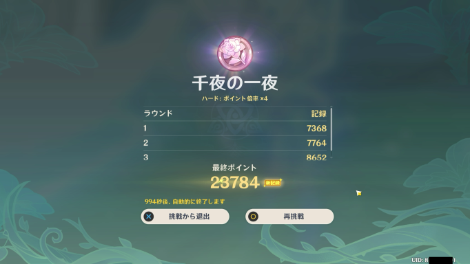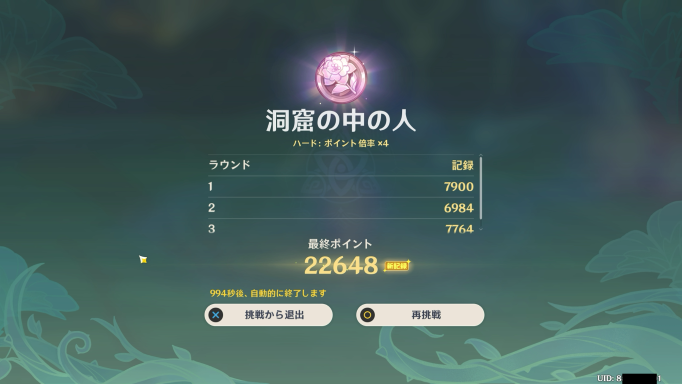 螺旋が新しくなってた。 黄金王獣さまとはお別れだったね。正直そのあとのわんこたちのほうがきつかったからステージ入れ替えは歓迎だけど今回殺意高いねー。12Rでナヒーダ倒されて何度かやりなおしたよ。 もうちょいでナヒーダの開花ダメージが10万に載る・・・ちなみに今回はニィロウ開花ダメージ上がる方の装備じゃなくて普通に数値高い方にしてる。同等のサブOPにならん限りはこっちの方が強そうだ。草もう一体入れてそっちで遺物の草弱化入れられるならナヒーダを開花ダメ上がる遺物にしてもいいかもなぁ。 露骨に夜蘭の爆発回数増えてるの絶対イベント秘境のせいやって。今までそこまで爆発でダメージ稼がなくても開花に任せとけばよかったから爆発ここぞって時しか打ってなかったけど秘境に慣らされてつい雑魚にも打ってしまってた。すぐたまるから別にいいんだけどね。 今回はアルハイゼンの初陣だった。思い出したかのように11で使っただけでさすがに武器がまだ弱いから火力でなくてティナリに戻したけど強さの片鱗は味わえたかなー。強いとは思うけどこのメンバーで回す激化編成としてはやっぱティナリがちょうどいいかな。 今回の螺旋は・・・傀儡3体の火力にナヒーダさんへし折られたのが印象的だった。 PR 2023.02.12 Sun 02:12:00